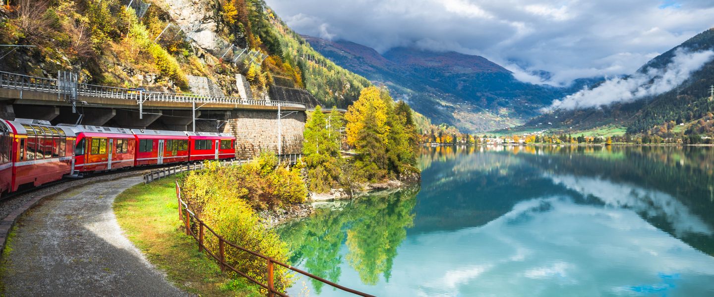 Genießen Sie das Alpenpanorama der Schweiz mit einem einzigartigen Zugerlebnis. Wilde Schluchten, liebliche Täler, kühn gebaute Bahntrassen, spektakuläre Viadukte und Kehrtunnel begleiten Sie während der Zugfahrten in den Panoramawägen auf der Strecke des Bernina- und Glacier Express.