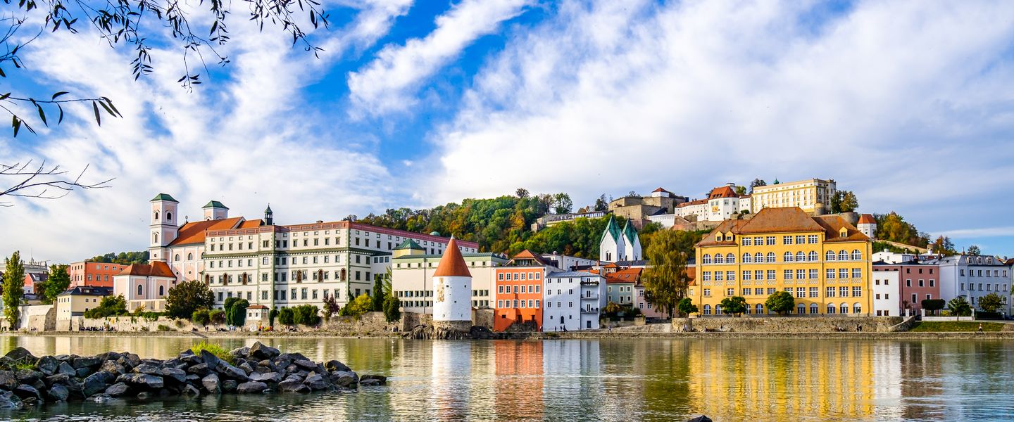 Passau ist eine malerische Stadt in Deutschland, die im Bundesland Bayern liegt und an der Grenze zu Österreich in der Region Niederbayern liegt. Die Stadt ist bekannt für ihre beeindruckende Altstadt, die von der Donau, dem Inn und der Ilz umgeben ist, und wird oft als "Dreiflüssestadt" bezeichnet. Passau ist berühmt für ihre barocke Architektur, insbesondere den Dom St. Stephan, der die größte Kirchenorgel der Welt beherbergt. Die Stadt hat eine reiche Geschichte, die bis in die römische Zeit zurückreicht, als sie als Militärlager gegründet wurde. Im Mittelalter entwickelte sich Passau zu einem wichtigen Handelszentrum und Bischofssitz, was zu ihrem kulturellen und wirtschaftlichen Aufschwung beitrug.