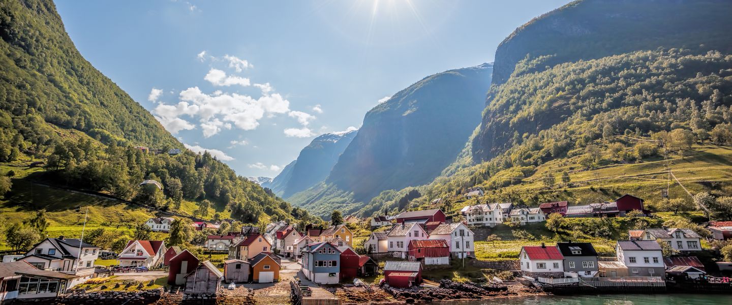 Flam ist eine malerische Stadt in Norwegen, die sich in der Region Vestland befindet. Sie liegt am Ende des Aurlandsfjords, einem Seitenarm des berühmten Sognefjords, und ist bekannt für ihre atemberaubende Natur und die spektakulären Landschaften, die sie umgeben. Flam ist berühmt für die Flåmsbana, eine der steilsten Eisenbahnstrecken der Welt, die Touristen durch beeindruckende Berglandschaften und vorbei an Wasserfällen führt. Die Stadt hat eine lange Geschichte als Handels- und Fischereistandort, die bis ins 17. Jahrhundert zurückreicht. Heute ist Flam ein beliebtes Ziel für Kreuzfahrtschiffe und Touristen, die die Schönheit der norwegischen Fjorde erleben möchten.
