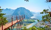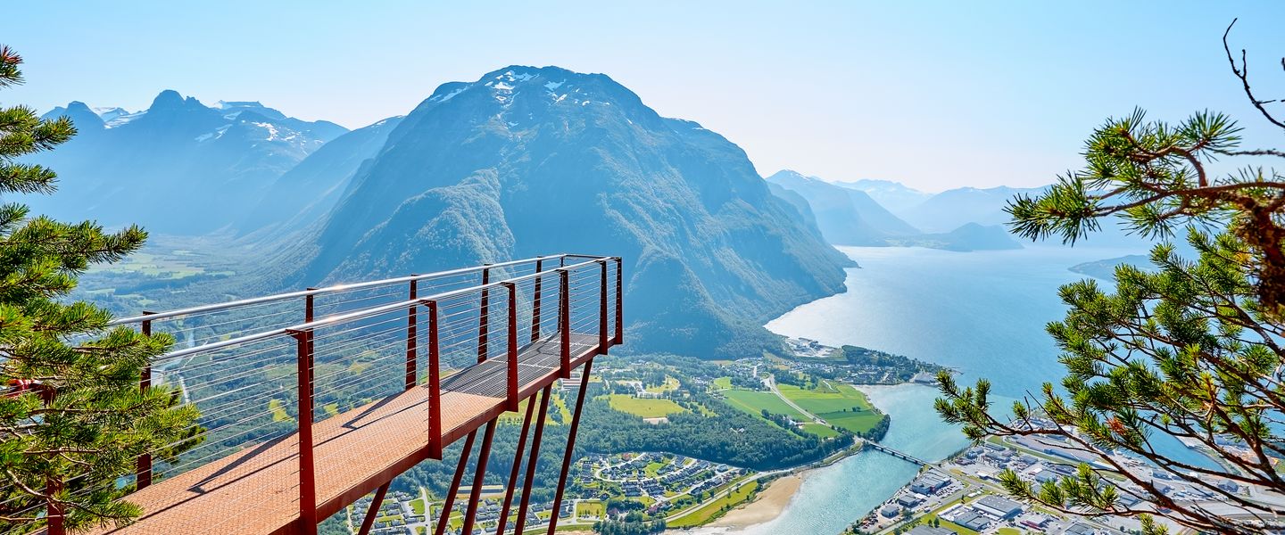 Am Morgen bietet sich bei Moskog die Gelegenheit zu einem kurzen Abstecher zum hübschen Wasserfall Huldrefossen. Auf Ihrer weiteren Route sehen Sie den verzweigten Nordfjord und malerische Seen, die von hohen Bergen umgeben sind. Anschließend fahren Sie mit der Fähre über den Geirangerfjord von Hellesylt nach Geiranger. Tosende Wasserfälle, steile Bergflanken und grandiose Ausblicke begleiten Sie auf diesem Weg. Ein Abstecher auf den knapp 1500 m hohen Dalsnibba lohnt sich, da der Ausblick auf Gipfel, Gletscher und den Fjord spektakulär ist. Vom "Geiranger Skywalk" aus können Sie sogar senkrecht durch den Boden in die Tiefe schauen!