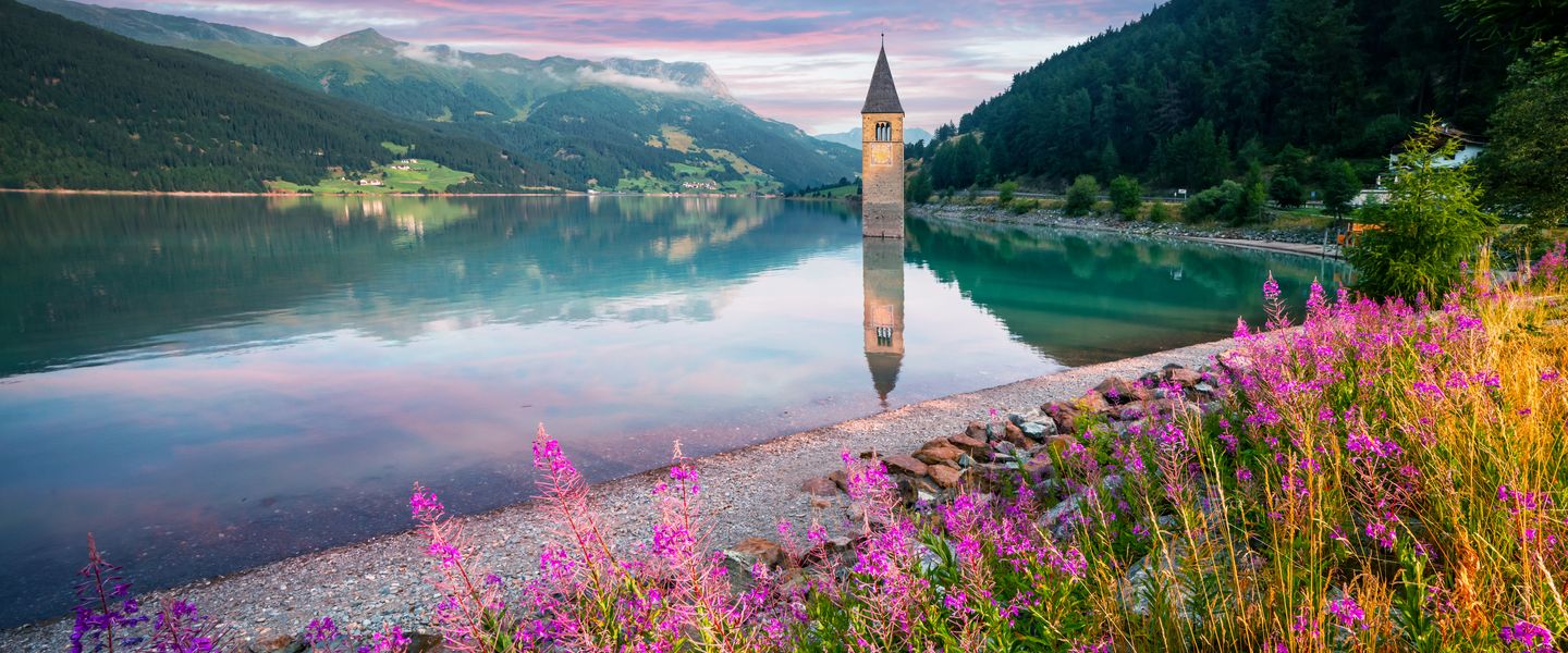 Heute unternehmen Sie einen Ausflug durch das frühlingshafte Vinschgau, das sich im größten zusammenhängenden Obstanbaugebiet Europas erstreckt. Hier erwarten Sie glitzernde Gletscher, glasklare Seen, Weinreben und ein Meer aus Obstblüten. Ihr erster Halt ist der Reschensee, bekannt für die versunkene Kirche von Graun, die im Volksmund als „Atlantis der Berge“ bezeichnet wird. Genießen Sie die panoramareiche Aussicht auf den majestätischen Ortler und die blühenden Obstwiesen des Vinschgaus. Anschließend fahren Sie ins „Dorf des weißen Goldes“, das berühmte Marmordorf Laas, wo Sie genügend Zeit haben, den traditionellen Laaser Ostermarkt zu besuchen und die regionalen Köstlichkeiten zu entdecken.