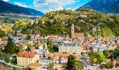 Meran ist eine malerische Stadt in Italien, die in der autonomen Provinz Bozen in Südtirol liegt. Sie befindet sich im oberen Etschtal, umgeben von beeindruckenden Bergen und ist bekannt für ihr mildes Klima, das sie zu einem beliebten Kurort macht. Meran ist berühmt für ihre Thermalquellen und die wunderschöne Altstadt mit ihren historischen Gebäuden, darunter die Laubengänge und das Kurhaus. Die Stadt hat eine lange Geschichte, die bis in die Römerzeit zurückreicht, als sie als wichtiger Handelsplatz und Erholungsort für die Oberschicht diente. Im 19. Jahrhundert erlebte Meran einen Aufschwung als Kurort, was zur Entwicklung von eleganten Hotels und Villen führte.